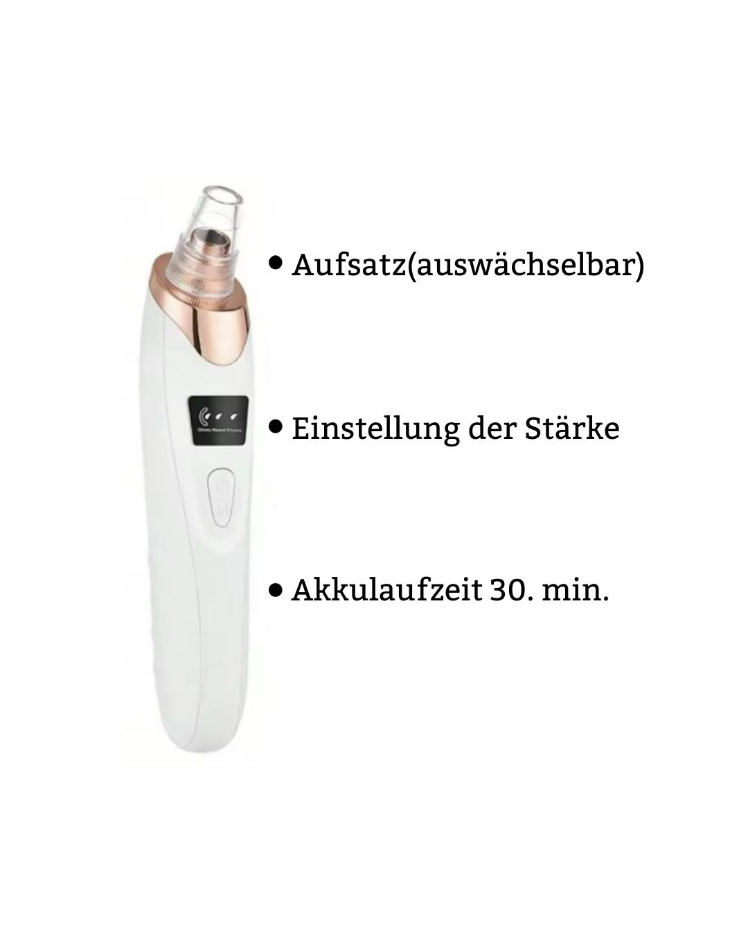 Mit der innovativen, verbesserten Vakuum-Technologie sorgt das Gerät für eine besonders starke Saugkraft. Es entfernt mühelos Mitesser, Whiteheads, abgestorbene Hautschüppchen, Make-up-Rückstände sowie Akne und Pickel – sanft, nicht reizend und schmerzfrei, ganz ohne Hautschäden.